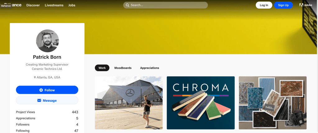 Behance: Portfolio Posted bypatrickbornOctober 3, 2021October 3, 2021Posted inUncategorizedTags:behance, design, graphicdesigner, moodboard, portfolio View behance profile Share this: Click to share on X (Opens in new window) X Click to share on Facebook (Opens in new window) Facebook Like Loading... Related