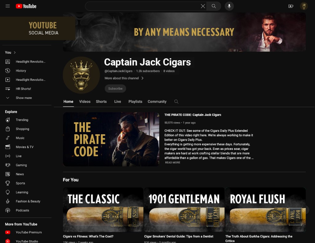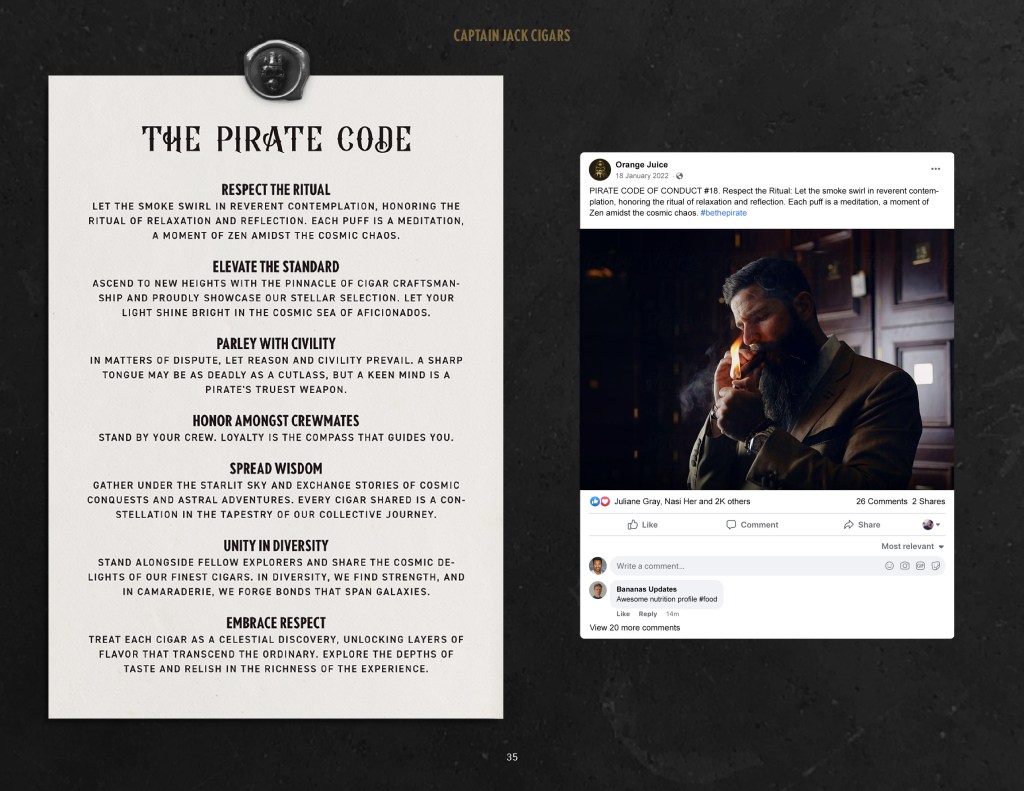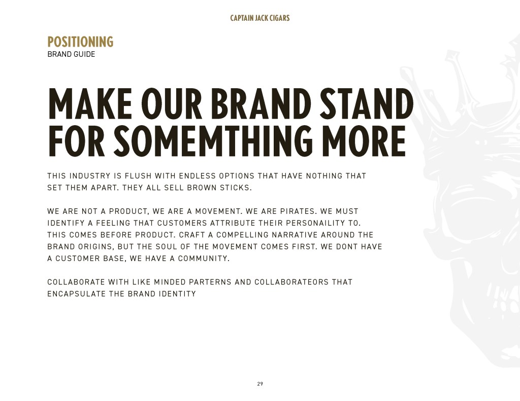 Captain Jack Cigars was more than a branding project, it was a full-scale brand invention. I led the creation of this startup cigar company’s identity from the ground up, developing a complete brand strategy, tone, and visual world that would set it apart in a saturated market of lookalike legacy brands. Drawing inspiration from bold challenger brands like Liquid Death, I crafted a personality-first system rooted in attitude, storytelling, and community, not just cigars.